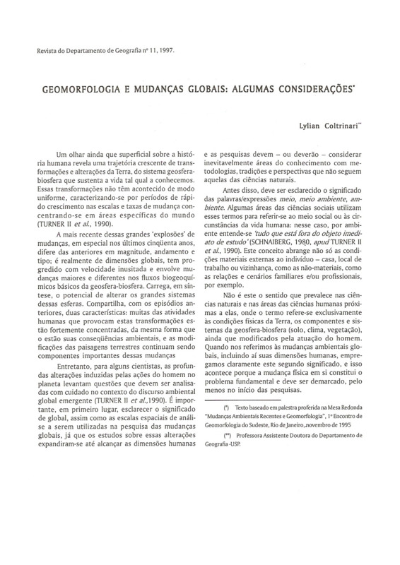 GEOMORFOLOGIA E MUDANÇAS GLOBAIS: ALGUMAS CONSIDERAÇÕES