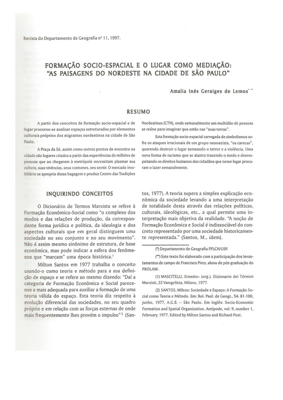- FORMAÇÃO SÓCIO-ESPACIAL E O LUGAR COMO MEDIAÇÃO: "AS PAISAGENS DO NORDESTE NA CIDADE DE SÃO PAULO"