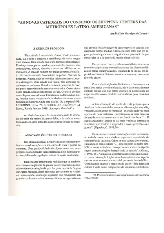 - AS NOVAS CATEDRAIS DO CONSUMO: OS SHOPPING CENTERS DAS METRÓPOLES LATINO-AMERICANAS