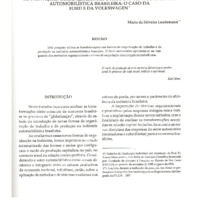 Esta pesquisa enfoca as transformações nas formas de organização do trabalho e da produção na indústria automobilística brasileira. O setor automotivo apresenta-se na vanguarda das inovações organizacionais e centro de negociação das conquistas trabalhistas.