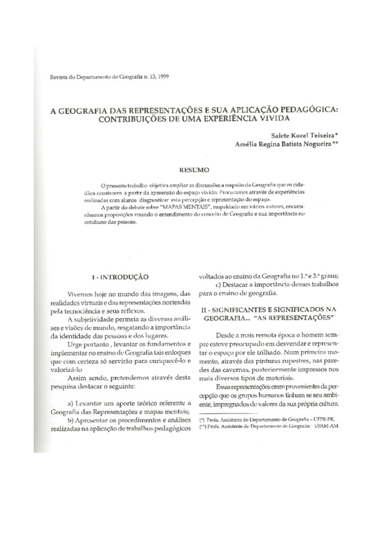 A GEOGRAFIA DAS REPRESENTAÇÕES E SUA APLICAÇÃO PEDAGÓGICA:CONTRIBUIÇÕES DE UMA EXPERIÊNCIA VIVIDA