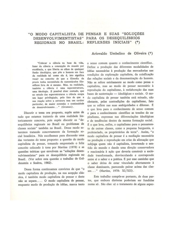"O MODO CAPITALISTA DE PENSAR E SUAS "SOLUÇÕES DESENVOLVIMENTISTAS" PARA OS DESEQUILÍBRIOS REGIONAIS NO BRASIL: REFLEXÕES INICIAIS" - DOI: 10.7154/RDG.1984.0003.0002