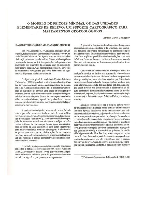 O MODELO DE FEIÇÕES MÍNIMAS, OU DAS UNIDADES ELEMENTARES DE RELEVO: UM SUPORTE CARTOGRÁFICO PARA MAPEAMENTOS GEOLÓGICOS