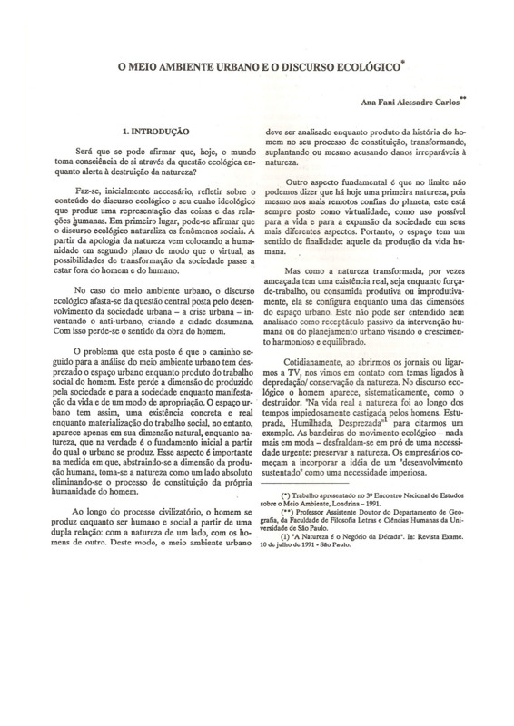 - O MEIO AMBIENTE URBANO E O DISCURSO ECOLÓGICO