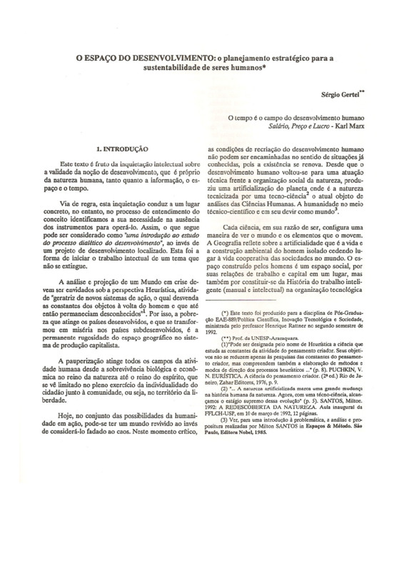 - O ESPAÇO DO DESENVOLVIMENTO: O PLANEJAMENTO ESTRATÉGICO PARA A SUSTENTABILIDADE DE SERES HUMANOS