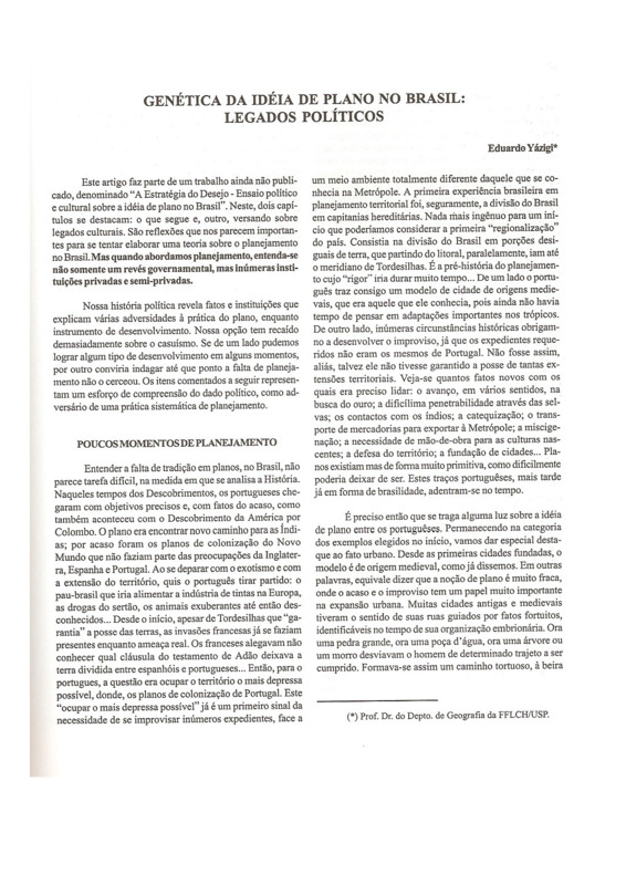 - GENÉTICA DA IDÉIA DE PLANO NO BRASIL: LEGADOS POLÍTICOS