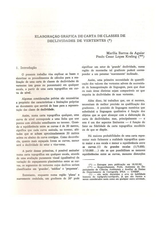 ELABORAÇÃO GRÁFICA DE CARTA DE CLASSES DE DECLIVIDADE DE VERTENTES
