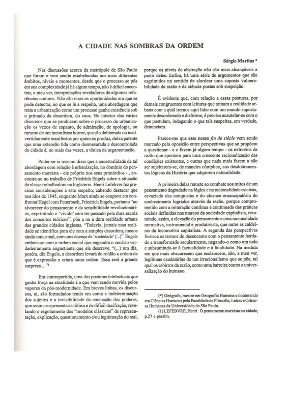 - A CIDADE NAS SOMBRAS DA ORDEM