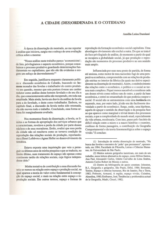 - A CIDADE (DES)ORDENADA E O COTIDIANO