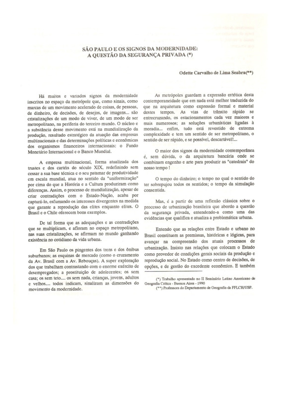 - SÃO PAULO E OS SIGNOS DA MODERNIDADE: A QUESTÃO DA SEGURANÇA PRIVADA