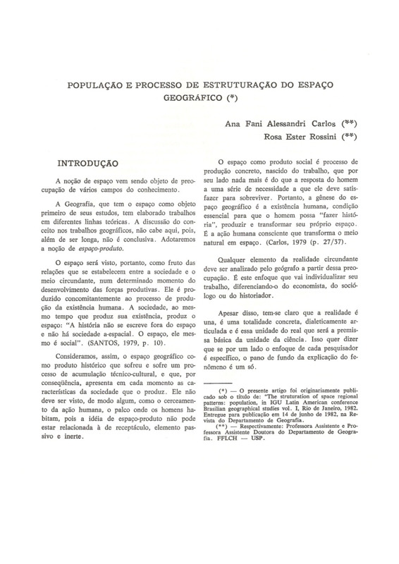 - POPULAÇÃO E PROCESSO DE ESTRUTURAÇÃO DO ESPAÇO GEOGRÁFICO