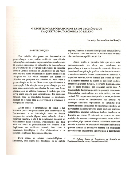 - O REGISTRO CARTOGRÁFICO DOS FATOS GEOMORFOLÓGICOS E A QUESTÃO DA TAXONOMIA DO RELEVO