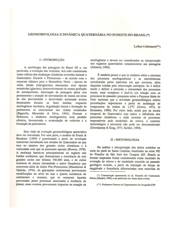- GEOMORFOLOGIA E DINÂMICA QUATERNÁRIA NO SUDESTE DO BRASIL