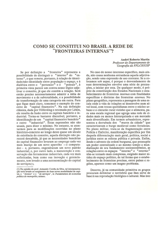 COMO SE CONSTITUI NO BRASIL A REDE DE "FRONTEIRAS INTERNAS"?