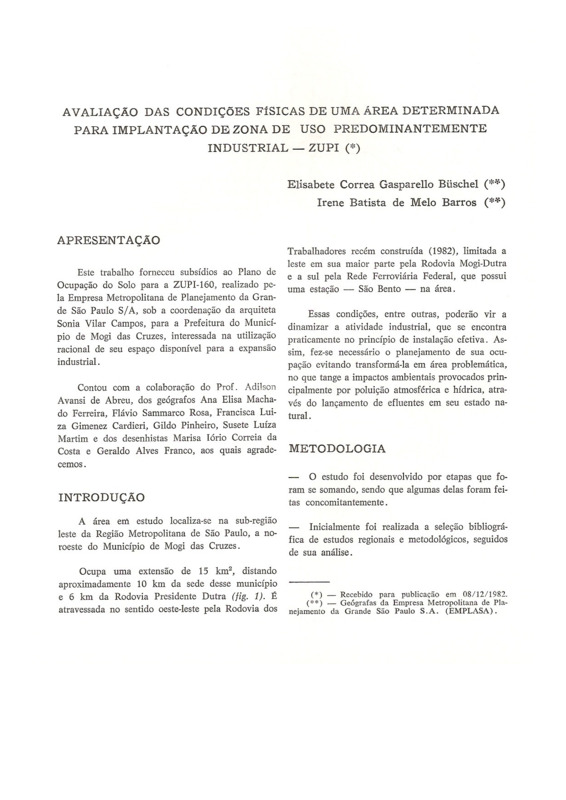 AVALIAÇÃO DAS CONDIÇÕES FÍSICAS DE UMA ÁREA DETERMINADA PARA IMPLANTAÇÃO DE ZONA DE USO PREDOMINANTEMENTE INDUSTRIAL - ZUPI