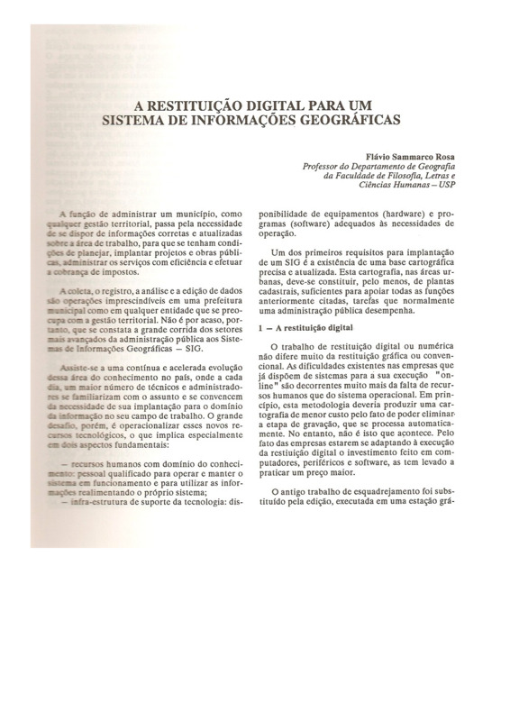 - A RESTITUIÇÃO DIGITAL PARA UM SISTEMA DE INFORMAÇÕES GEOGRÁFICAS