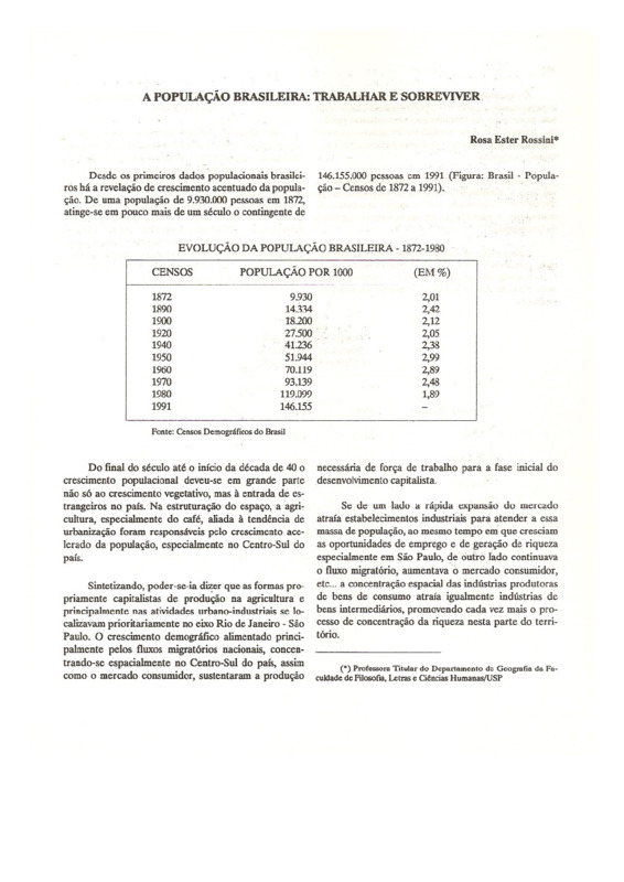A POPULAÇÃO BRASILEIRA: TRABALHAR E SOBREVIVER