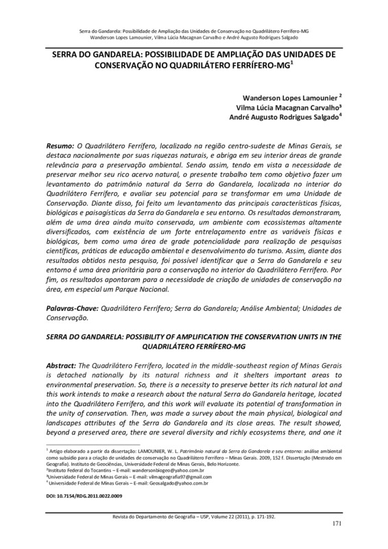 biológicas e paisagísticas da Serra do Gandarela e seu entorno. Os resultados demonstraram,