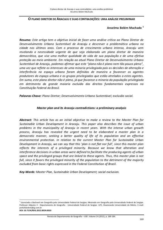 Este artigo tem o objetivo inicial de fazer uma análise crítica ao Plano Diretor de