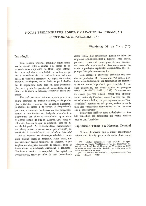 - NOTAS PRELIMINARES SOBRE O CARÁTER DA FORMAÇÃO TERRITORIAL BRASILEIRA