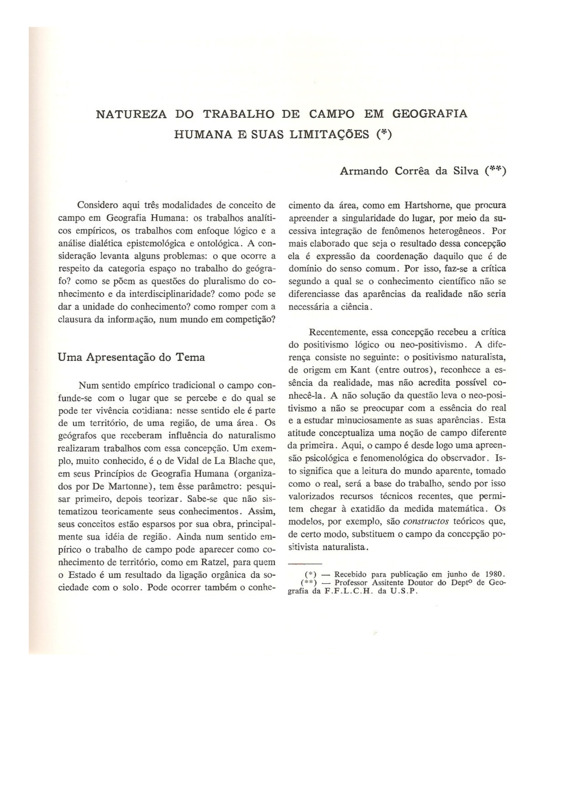 NATUREZA DO TRABALHO DE CAMPO EM GEOGRAFIA HUMANA E SUAS LIMITAÇÕES