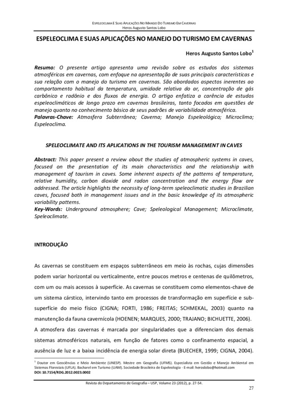 ESPELEOCLIMA E MANEJO DE CAVERNAS: ESTADO-DA-ARTE