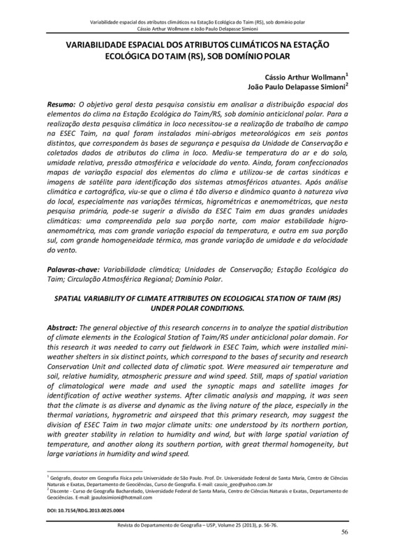 VARIABILIDADE ESPACIAL DOS ATRIBUTOS CLIMÁTICOS NA ESTAÇÃO ECOLÓGICA DO TAIM (RS), SOB DOMÍNIO POLAR