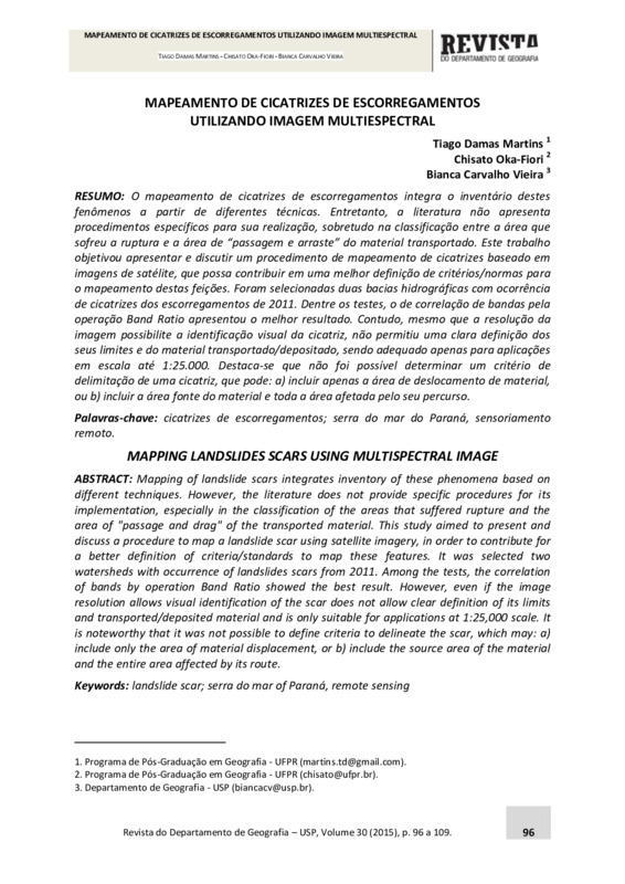 MAPEAMENTO DE CICATRIZES DE ESCORREGAMENTOS UTILIZANDO IMAGEM MULTIESPCTRAL