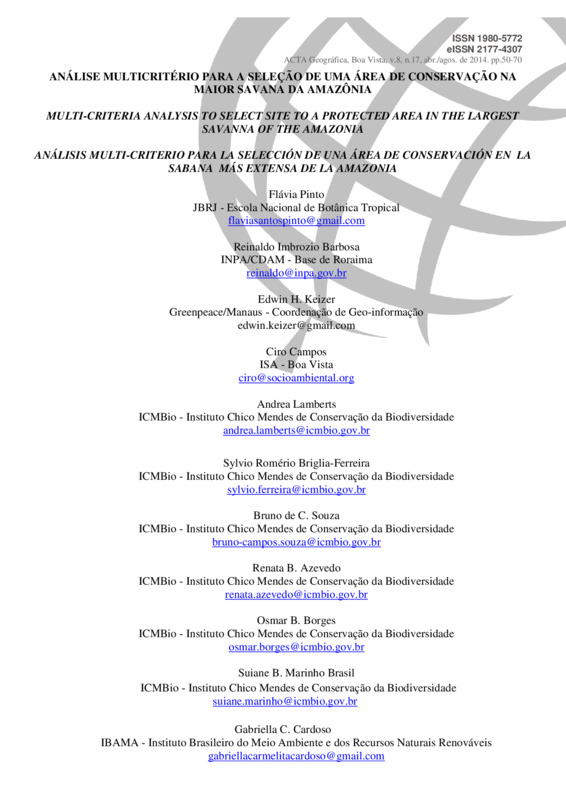Análise multicritério para a seleção de uma área de conservação na maior savana da Amazônia