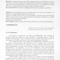 O presente artigo tem por objetivo principal relevar as atividades de ecoturismo e Educação Ambiental, paralelamente as suas devidas inter-relações, importância e prática atual, dentro de uma ótica crítica, no intuito destes aspectos se conciliarem de maneira realista com o desenvolvimento econômico, social e a questão ambiental.