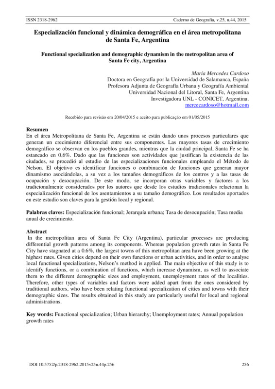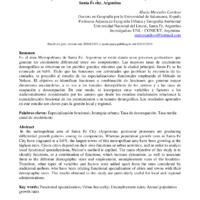 Especialización funcional y dinámica demográfica en el área metropolitana de Santa Fe, Argentina / Functional specialization and demographic dynamism in the metropolitan area of Santa Fe city, Argentina