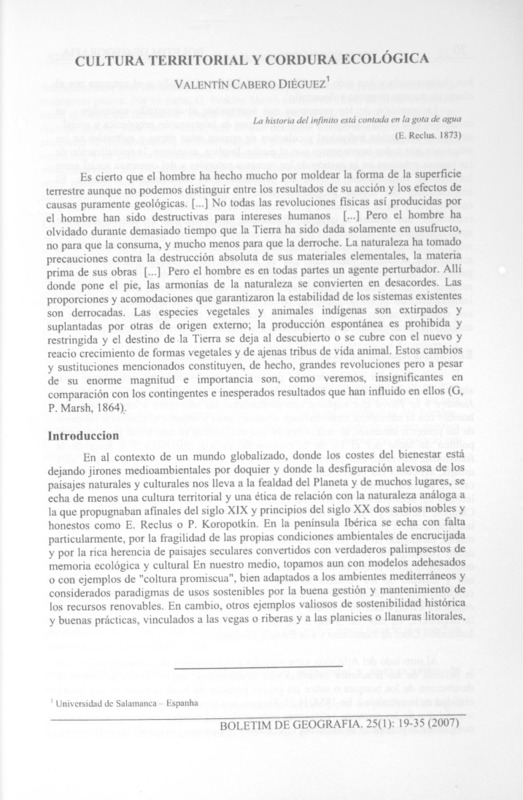 CULTURA TERRITORIAL Y CORDURA ECOLÓGICA