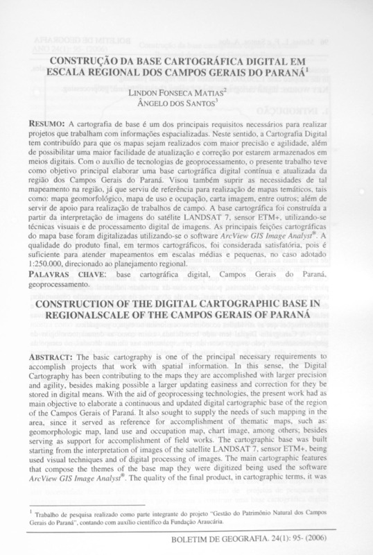 CONSTRUÇÃO DA BASE CARTOGRÁFICA DIGITAL EM ESCALA REGIONAL DOS CAMPOS GERAIS DO PARANÁ