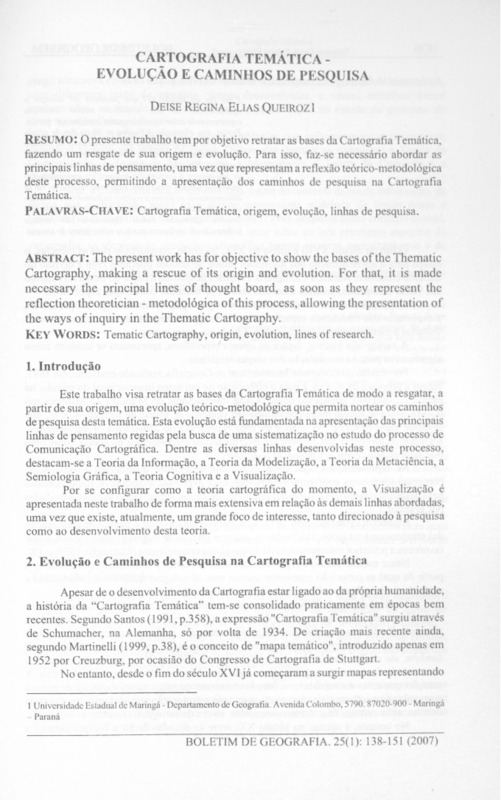 CARTOGRAFIA TEMÁTICA - EVOLUÇÃO E CAMINHOS DE PESQUISA