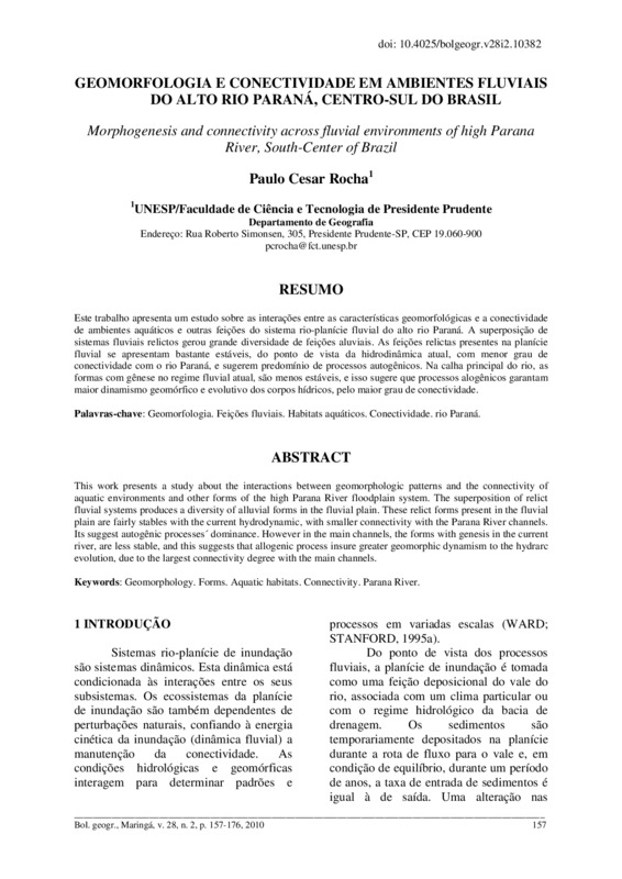 Geomorfologia e conectividade em ambientes fluviais do alto Rio Paraná, Centro-Sul do Brasil - doi