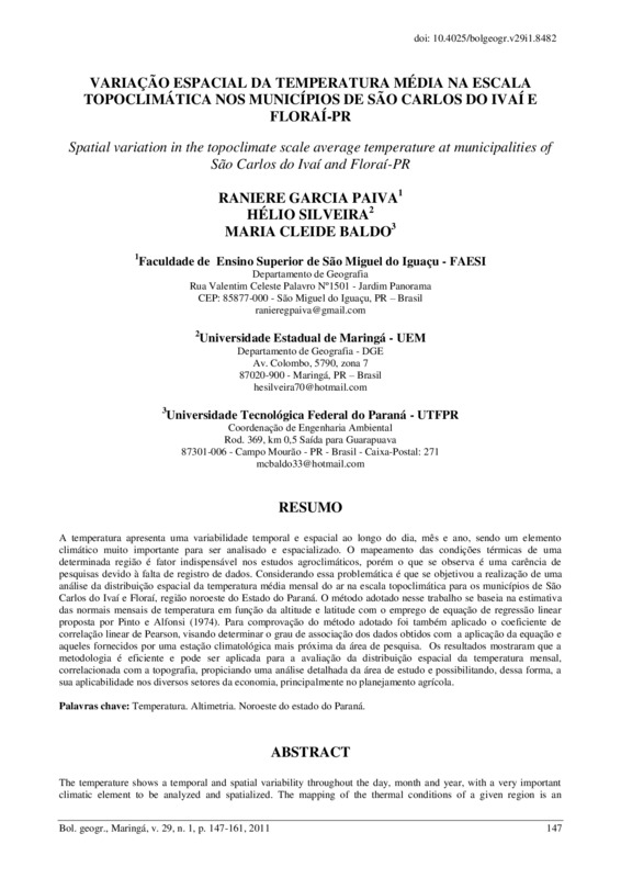 Variação espacial da temperatura média na escala topoclimática nos municípios de São Carlos do Ivaí e Floraí-PR - doi