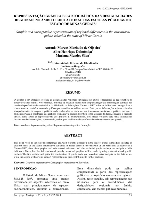 Representação gráfica e cartográfica das desigualdades regionais no âmbito educacional das escolas públicas no estado de Minas Gerais - doi: 10.4025/bolgeogr.v29i2.10662