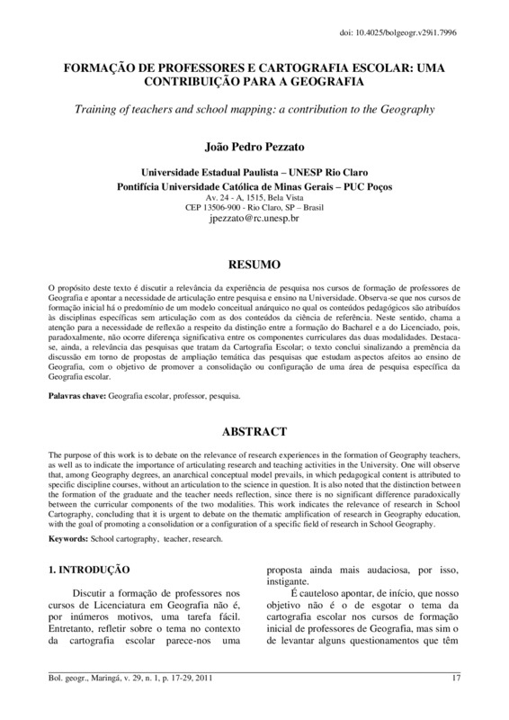 Formação de professores e cartografia escolar: uma contribuição para a Geografia - doi: 10.4025/bolgeogr.v29i1.7996