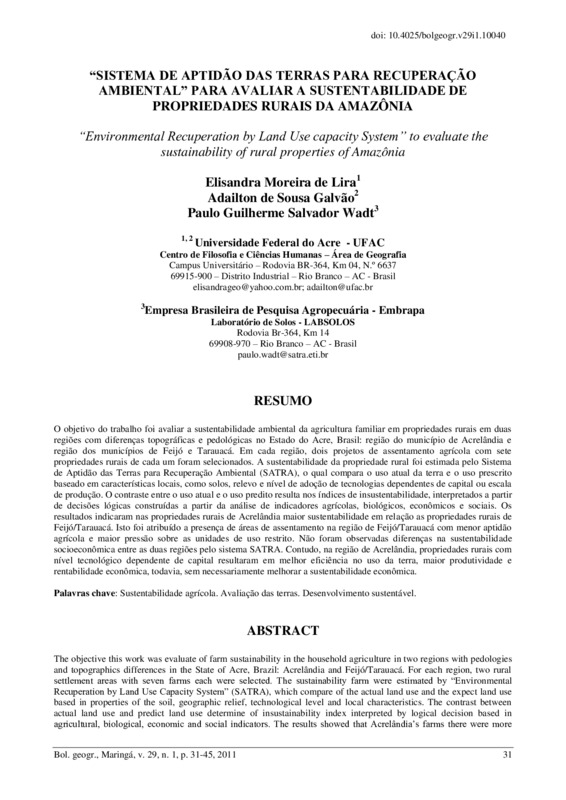 “Sistema de aptidão das terras para recuperação ambiental” para avaliar a sustentabilidade de propriedades rurais da Amazônia - doi: 10.4025/bolgeogr.v29i1.10040