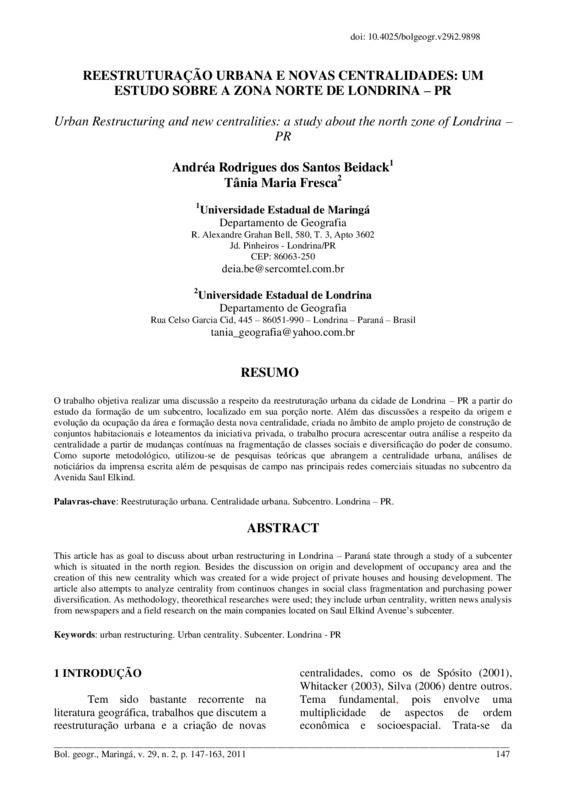 Reestruturação urbana e novas centralidades: um estudo sobre a zona norte de Londrina – PR - doi: 10.4025/bolgeogr.v29i2.9898