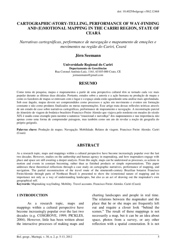 Cartographic-story-telling, performance of way-finding and (e)motional mapping in the Cariri region, State of Ceará - doi: 10.4025/bolgeogr.v30i2.12468