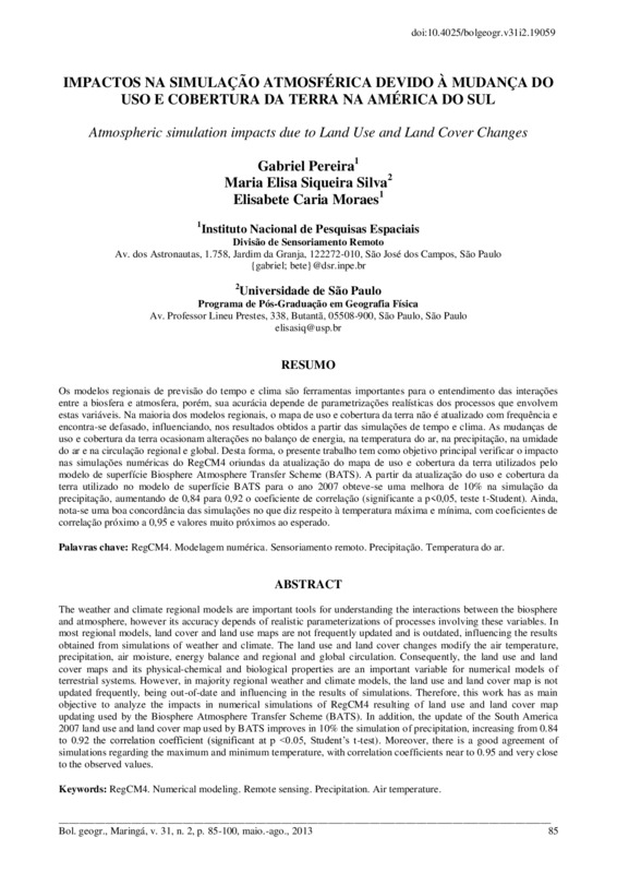Impactos na simulação atmosférica devido à mudança do uso e cobertura da terra na América do Sul - doi