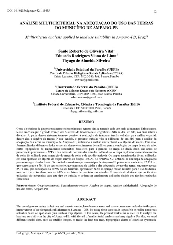 ANÁLISE MULTICRITERIAL NA ADEQUAÇÃO DO USO DAS TERRAS DO MUNICÍPIO DE AMPARO-PB