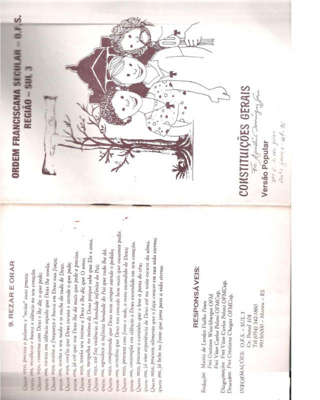 - O arquivo é composto por orações, ensinamentos sobre o que é a ordem Franciscana Secular e a atuação, bem como viver em fraternidade.
