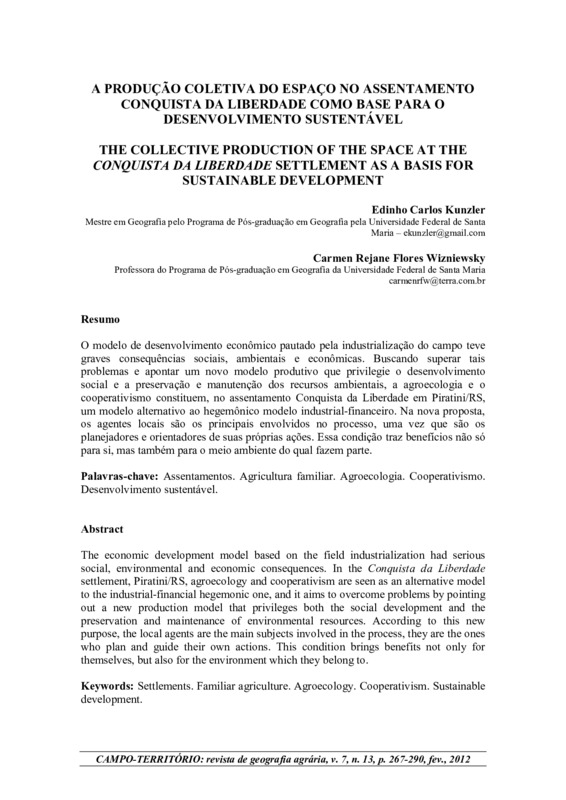 A PRODUÇÃO COLETIVA DO ESPAÇO NO ASSENTAMENTO CONQUISTA DA LIBERDADE COMO BASE PARA O DESENVOLVIMENTO SUSTENTÁVEL/ THE COLLECTIVE PRODUCTION OF THE SPACE AT THE CONQUISTA DA LIBERDADE SETTLEMENT AS A BASIS FOR SUSTAINABLE DEVELOPMENT