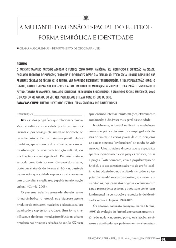 A MUTANTE DIMENSÃO ESPACIAL DO FUTEBOL: FORMA SIMBÓLICA E IDENTIDADE