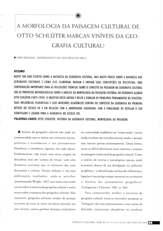 - A MORFOLOGIA DA PAISAGEM CULTURAL DE OTTO SCHLÜTER: MARCAS VISÍVEIS DA GEOGRAFIA CULTURAL?
