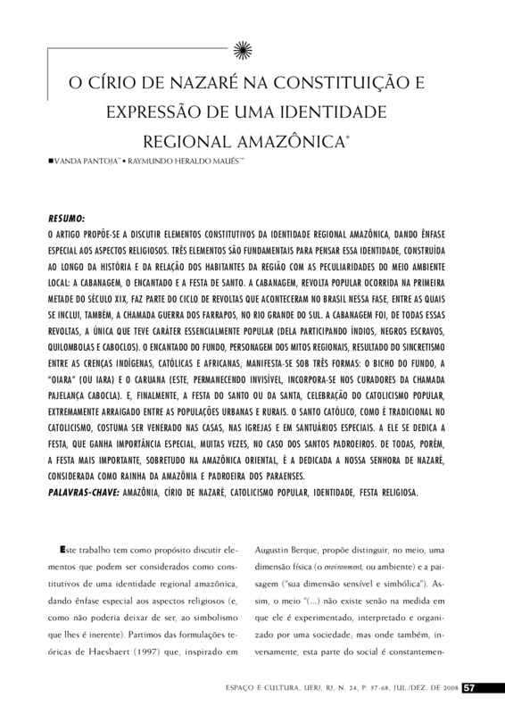 O CÍRIO DE NAZARÉ NA CONSTITUIÇÃO E EXPRESSÃO DE UMA IDENTIDADE REGIONAL AMAZÔNICA