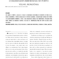 ESTE ARTIGO SE PROPÕE A ANALISAR O ESPAÇO DE COMUNIDADES RIBEIRINHAS DO MUNICÍPIO DE PORTO VELHO,