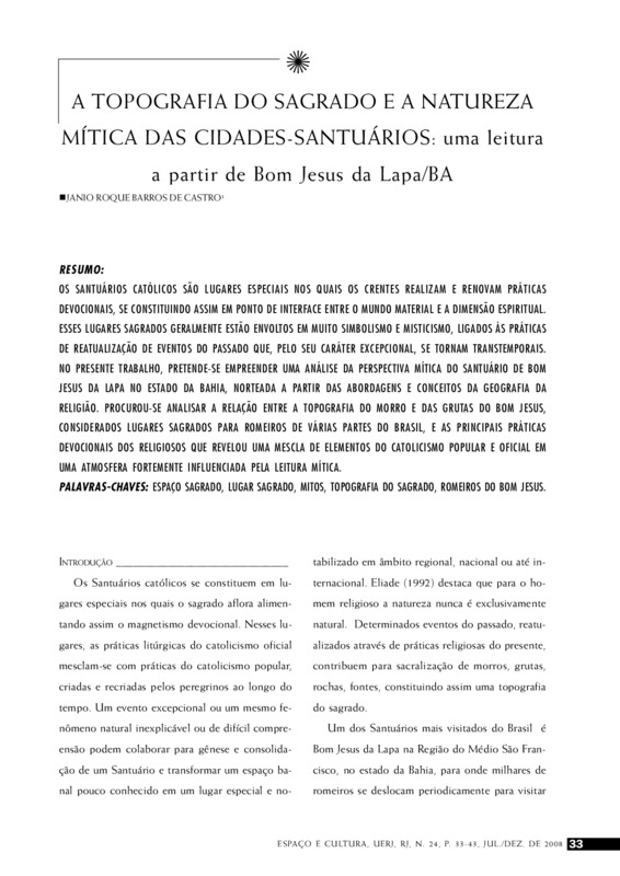 A TOPOGRAFIA DO SAGRADO E A NATUREZA MÍTICA DAS CIDADES-SANTUÁRIOS: uma leitura a partir de Bom Jesus da Lapa/BA